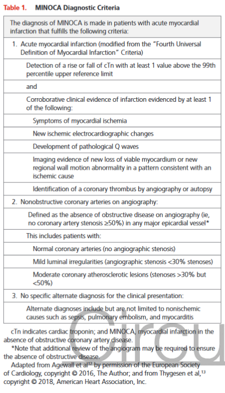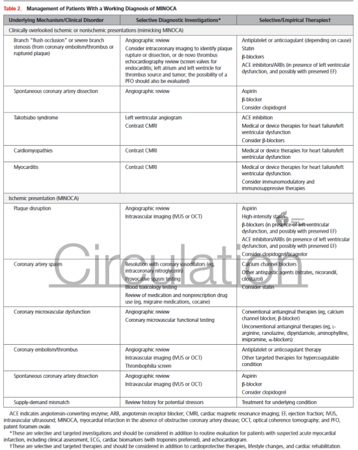Diagnosis and Management of MINOCA Patients